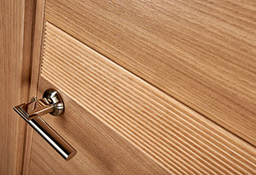 木目調玄関扉のへこみを傷跡が分からない様に補修いたしました。